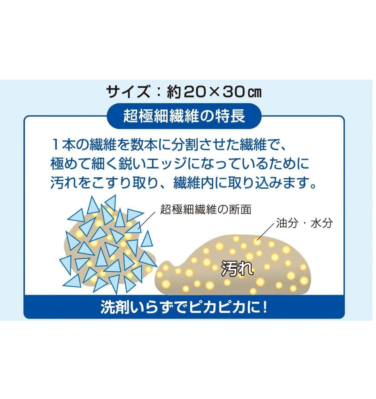 【特徴】1本の繊維を数本に分割させた超極細繊維。極めて細く鋭いエッジにより汚れをこすり取り、繊維内に取り込みます。キッチン、リビングのフローリング、家電製品、浴室や洗面所の汚れにお使いいただけます。水拭き、から拭きOK!市販のフローリングワイパーにも使えます。