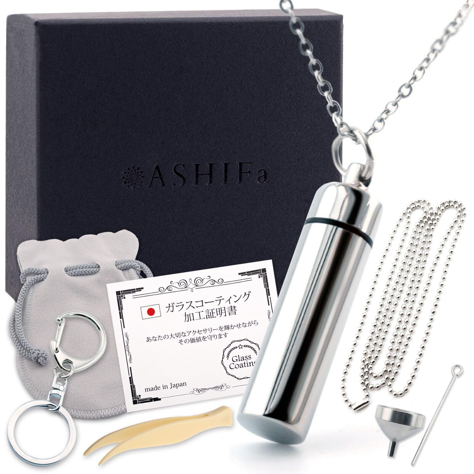 [ASHIFA] 遺骨 ペンダント 手元供養 セット付 金属アレルギー対応 ガラス管 二重構造 安心 遺骨カプセル 遺骨入れ ネックレス キーホルダー ステンレス製 メモリアルペンダント (2.シルバー)
