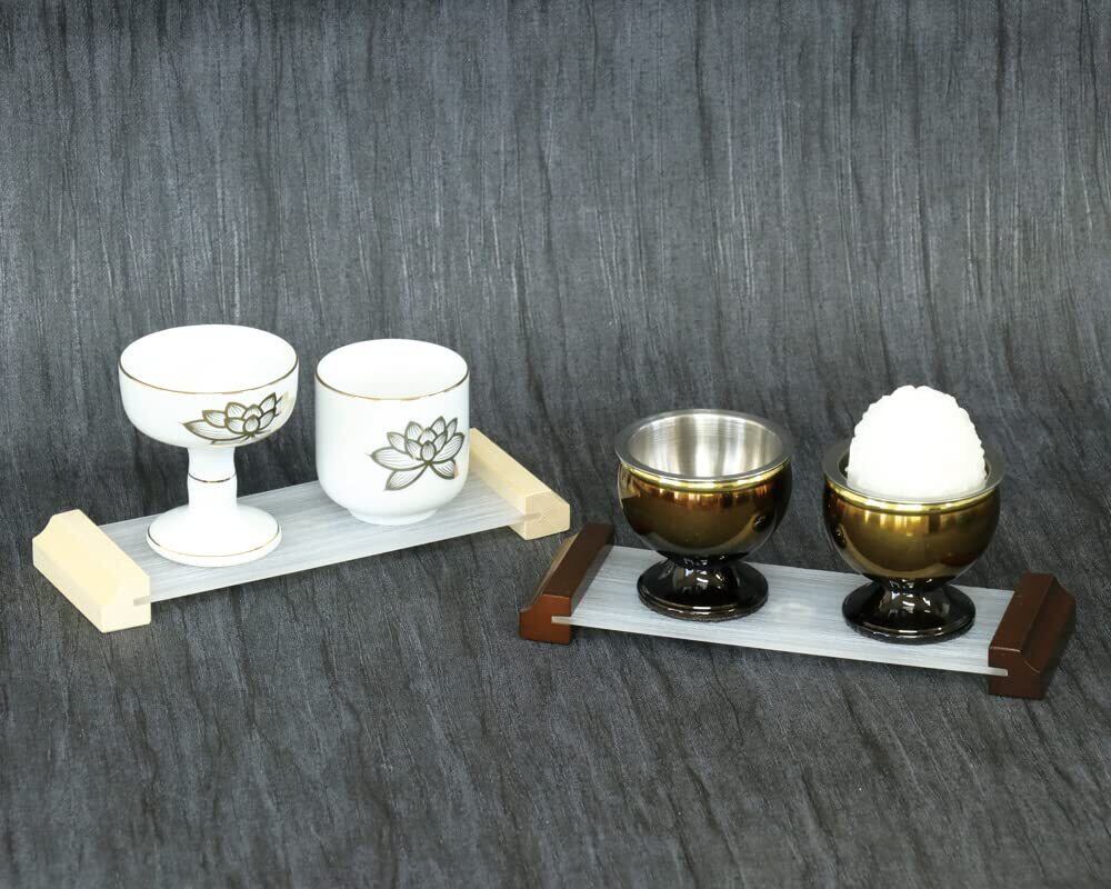 純日本製モダン仏器膳です。左右の台座部分に木をあしらい、シンプルで温かみのあるデザインとなっています。