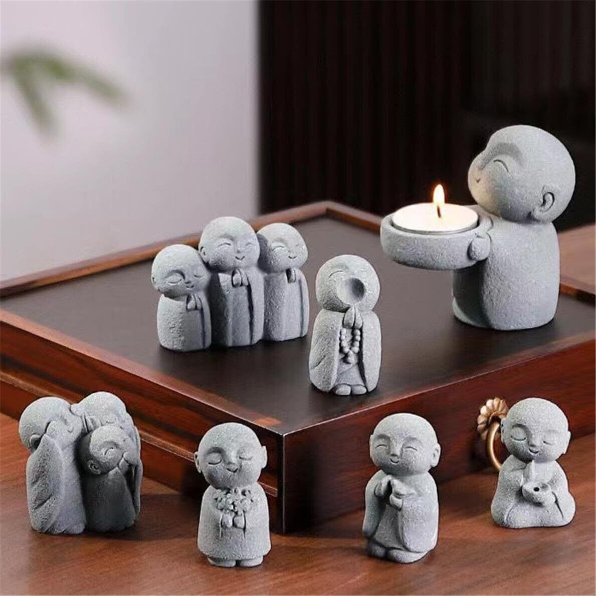 【京都伝統デザイン】地蔵菩薩の穏やかな表情と小坊主の愛らしいシルエットを融合。庭園文化の深い京都らしい「禅の美学」を現代インテリアに再現しました。
