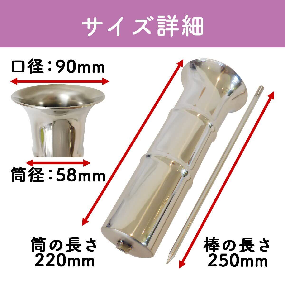 花筒長さ:220mm 地刺し棒長さ:250mm 筒径:58mm 口径:90mm