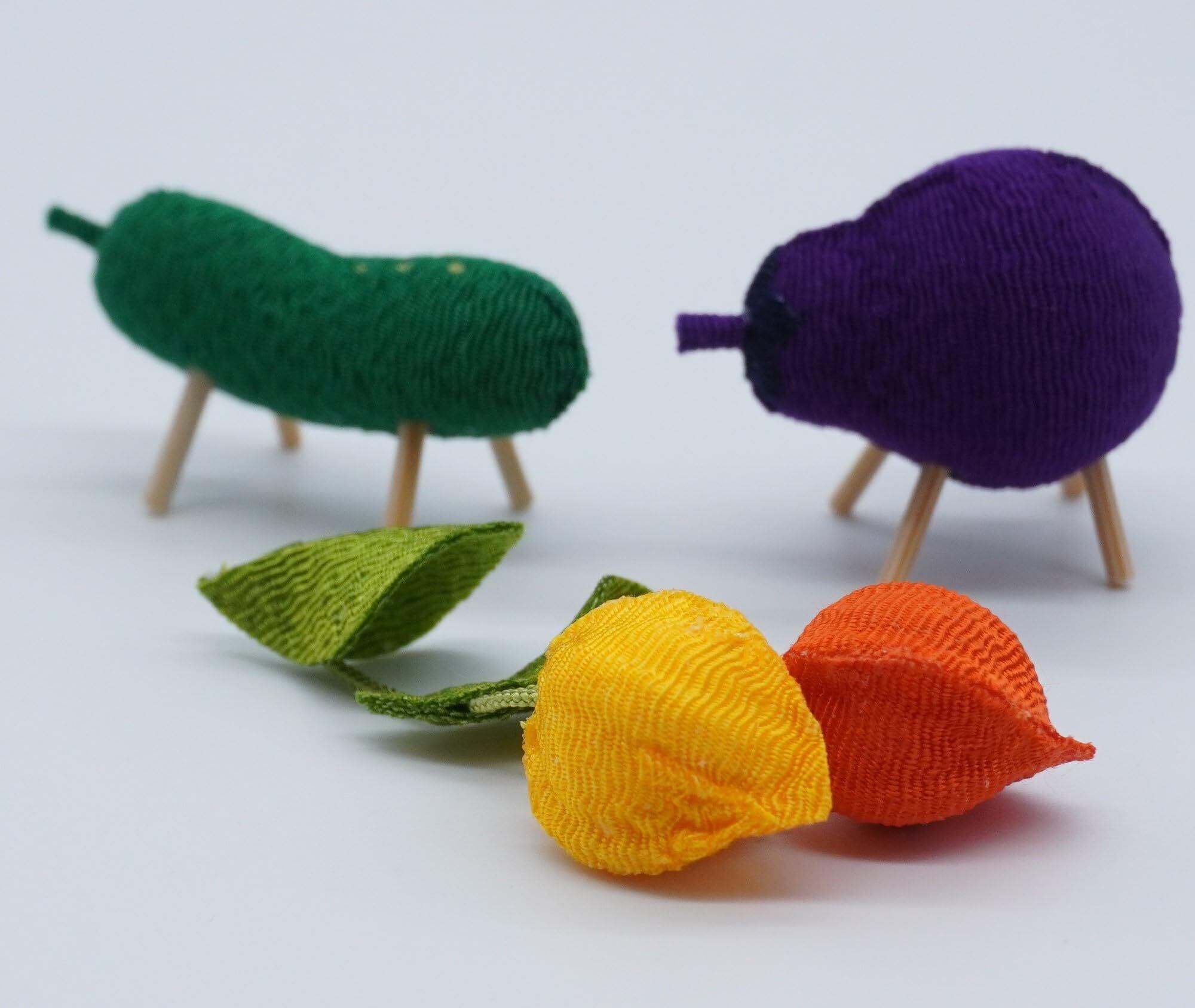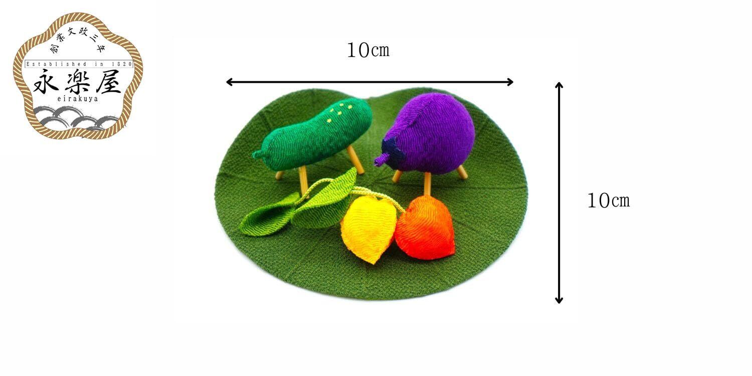ミニお盆飾り 牛馬・牛(ナス)と馬(キュウリ)・ほおずき・蓮の葉セット 精霊馬 レーヨンちりめん製品 小さくてかわいい 国産品