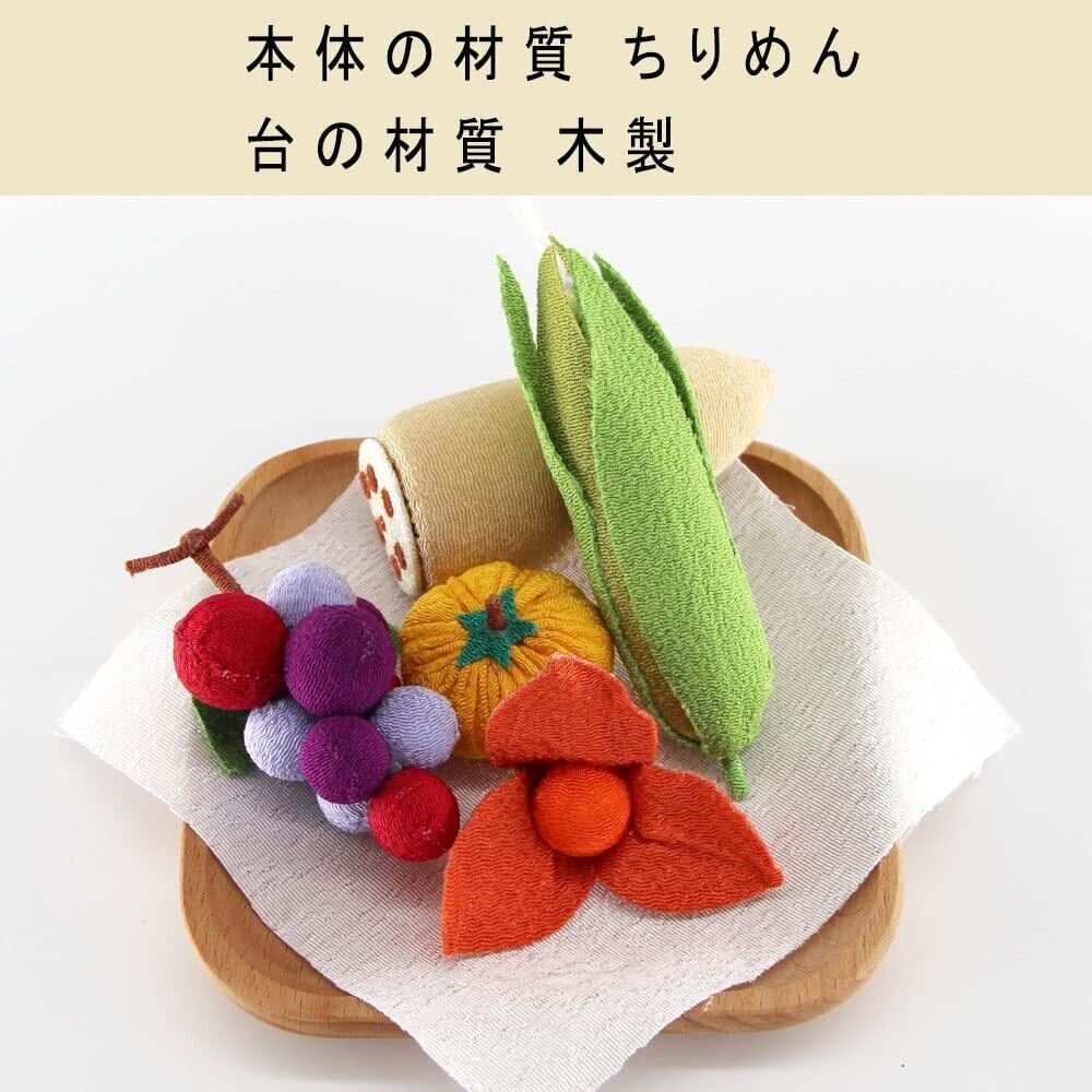 色鮮やかなちりめんのお供え物で、お盆飾りに華を添えます。 作り手さんが丁寧に作った見た目も楽しい一品。
