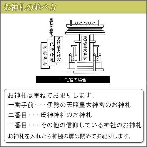 やや大きめの中型のお神札を入れておくのに最適な簡易神棚です。置く場所に困らないコンパクトサイズです。ほこりが入らないよう正面は透明アクリル板で、屋根を外してお神札を入れます。