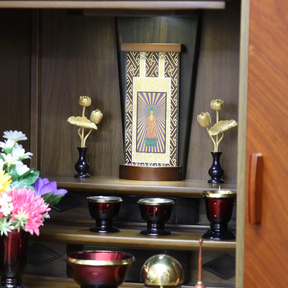 国産の木製の掛軸台と本尊1枚の掛軸です。完成品でお届けしますので組立などなく、お仏壇に置くだけで簡単に設置出来ます。