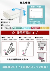 【グングン圧縮できる" 掃除機タイプ "】ダウンやぬいぐるみ(特大サイズ)、布団一式(布団用サイズ)まで衣替えに便利なサイズをラインナップ。1人暮らしから大家族まで、幅広いご家庭で使用しやすいサイズを取り揃えております。ほったらかしにしていた小さなお子様のぬいぐるみから、大人のかさばる洋服まで、コレ1つで綺麗に片付きます。