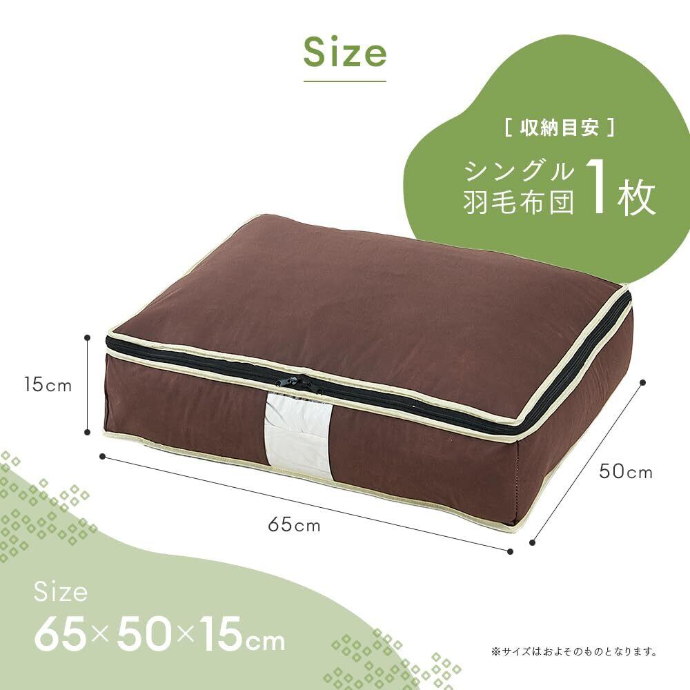 【商品仕様】商品サイズ/(約)65×50×15cm、適応サイズ/ダブル羽毛布団1枚、材質・成分/本体:ポリプロピレン不織布、窓:EVA樹脂