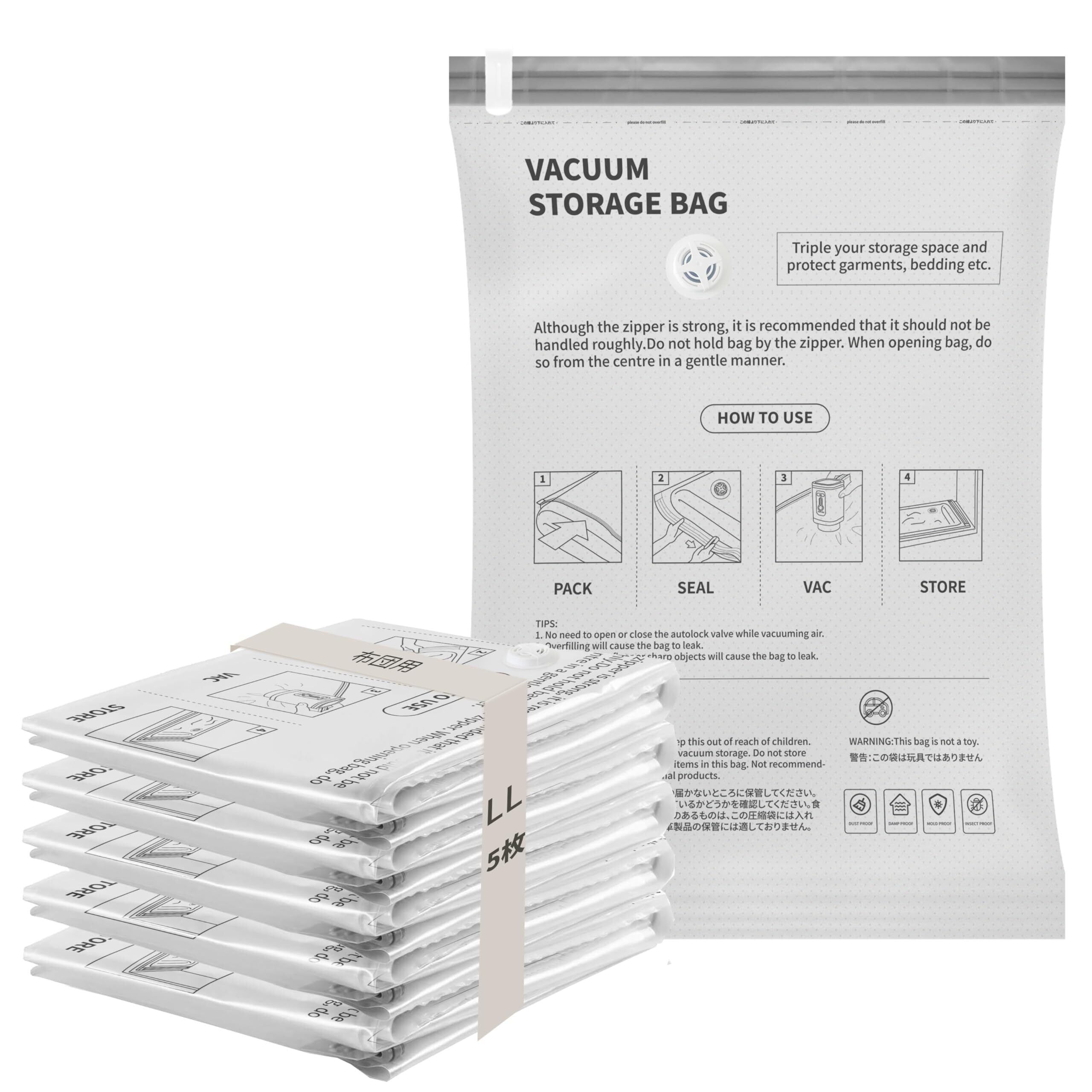 注意:圧縮袋のみ含まれ、吸引ポンプは付属しておりません。 【5 枚セットサイズ】特大サイズ 100×80cm×5 個、自宅での布団や毛布などの収納に最適です。