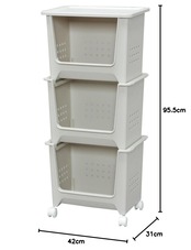 サイズ(約) 3段スタック時(キャスター取付):幅42.0×奥行31.0×高さ95.5cm バスケット内寸:幅35.0×奥行24.0×高さ29.5cm フタ取付時バスケットサイズ:幅42.0×奥行31.0×高さ31.5cm
