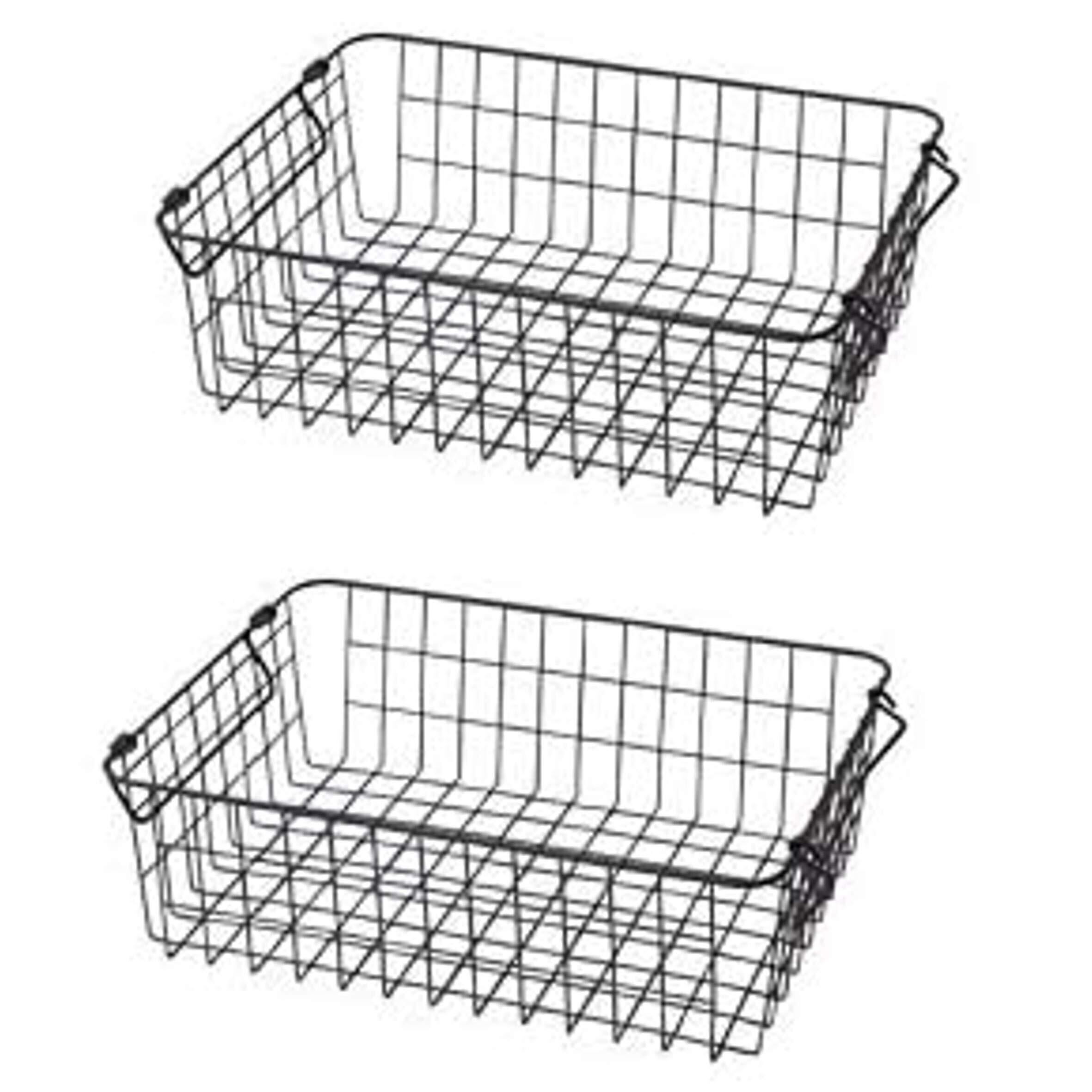 山善(YAMAZEN) ワイヤーバスケット 浅型タイプ(幅37 高さ12cm) 2個組 ブラック RWB-321(BK)*2