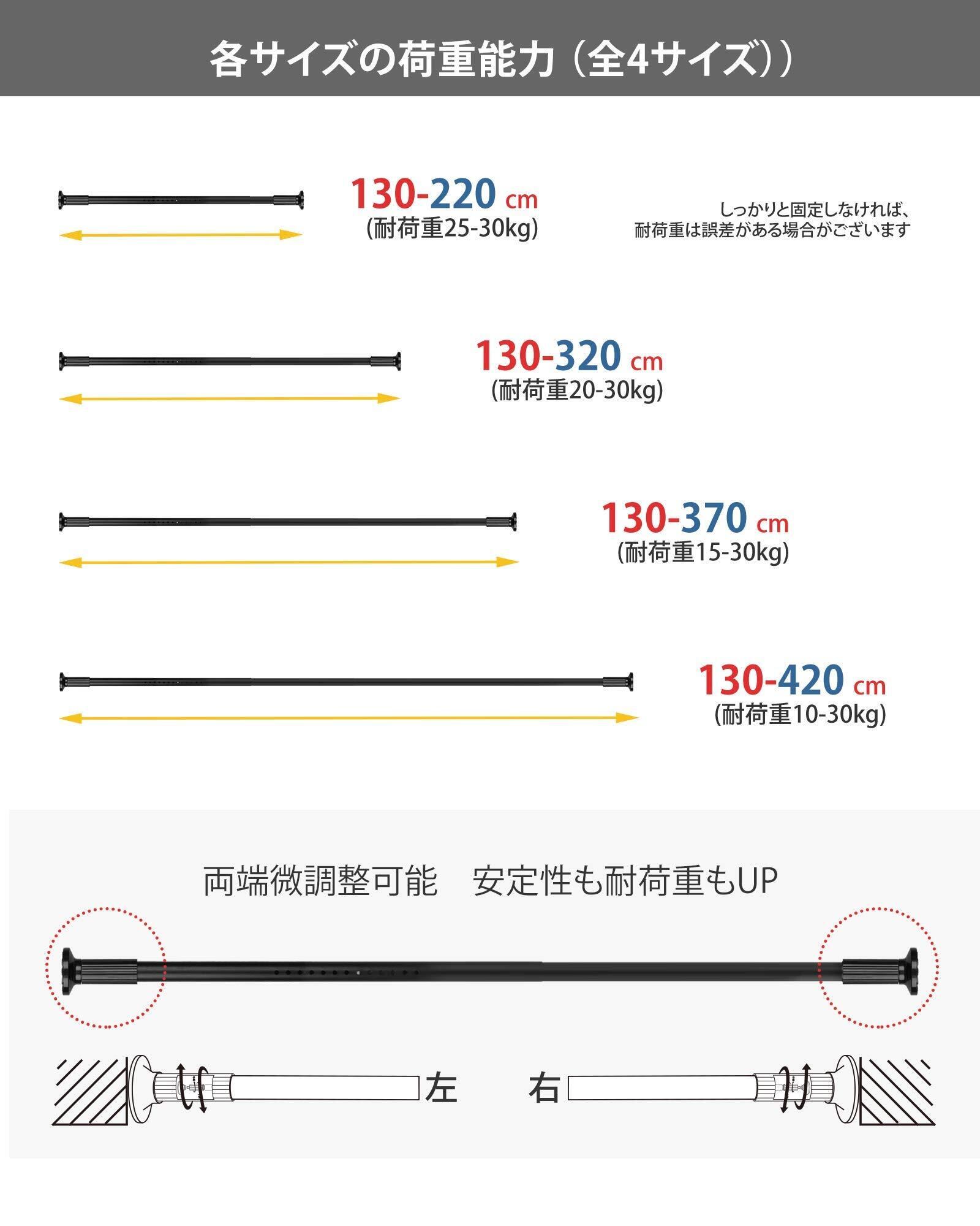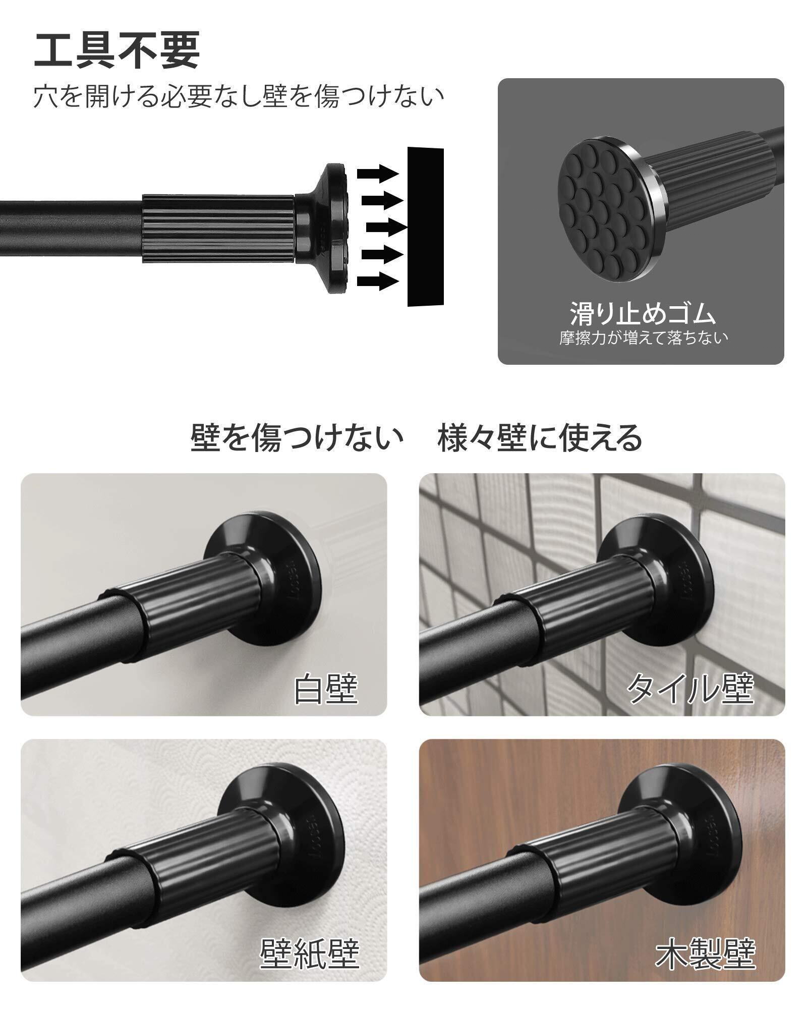 【耐荷重抜群】つっぱり棒は炭素鋼製で、強い負荷に耐えられます。强力ばねを内蔵して、長く伸ばしてもずれ落ちる心配がないです。接着面が滑り止めゴムを採用するので、摩擦力が增えます。
