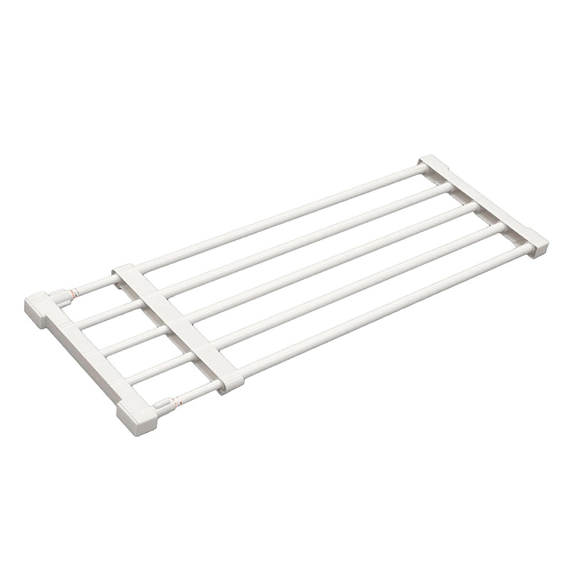 奥行きスリムなつっぱり棚。伸ばした部分も棚になる。