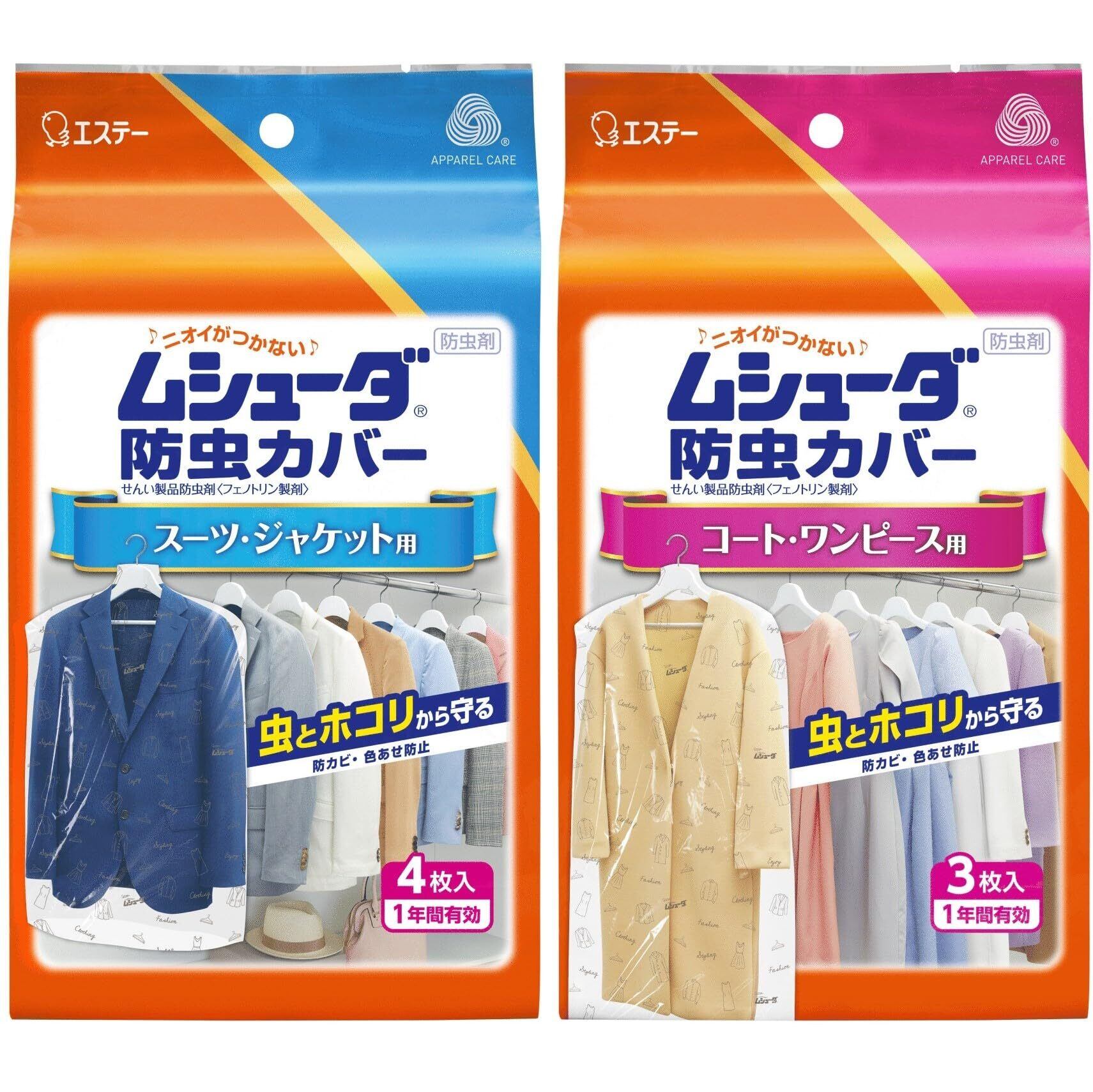 ムシューダ 防虫カバー [まとめ買い] 衣類用 防虫剤 スーツ・ジャケット用 4枚入 & コート・ワンピース用 3枚入 防カビ剤配合 1年間有効 衣類 防虫 衣類カバー