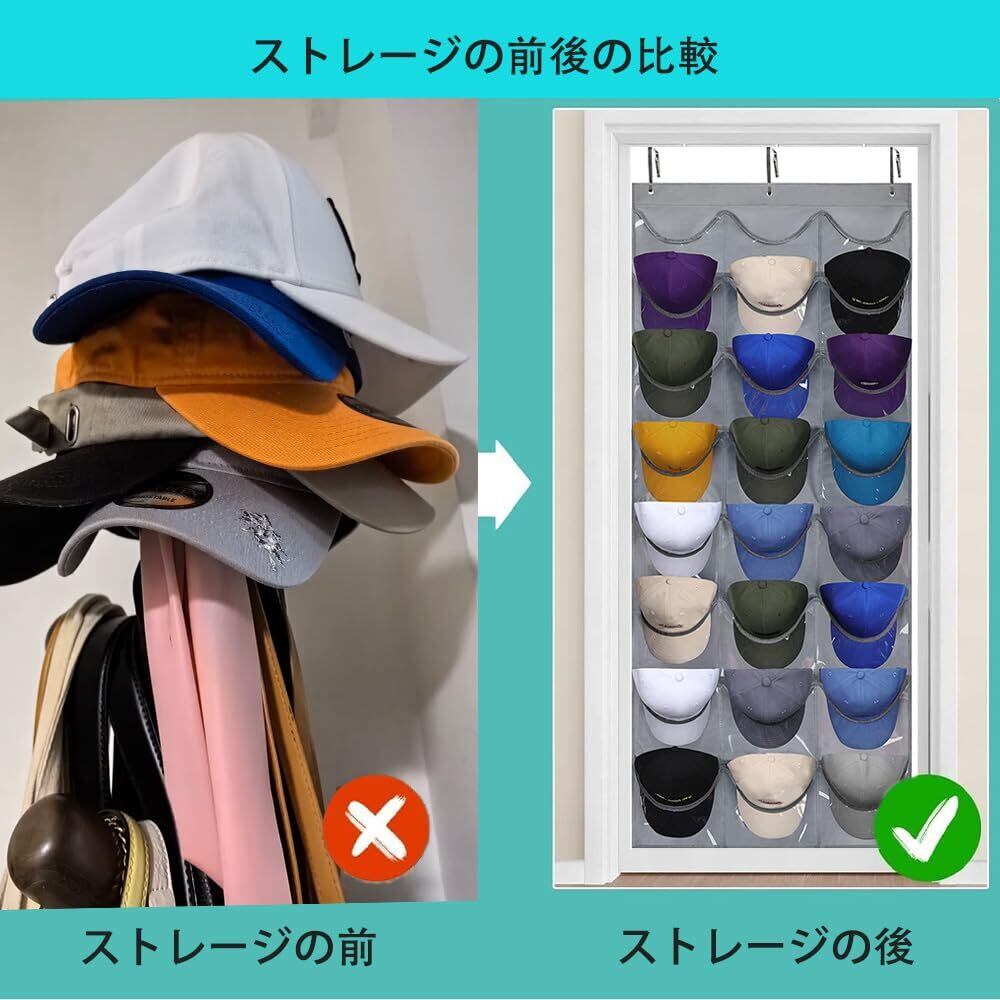 24ディープポケット:ドアの上の帽子ラックは、キャップが落ちないように十分な深さがあります!必要に応じて、1つのポケットに複数のキャップを収納できます。ポケットが豊富なベースボールキャップ用の帽子オーガナイザーは、他のアクセサリーを収納するのに役立ちます