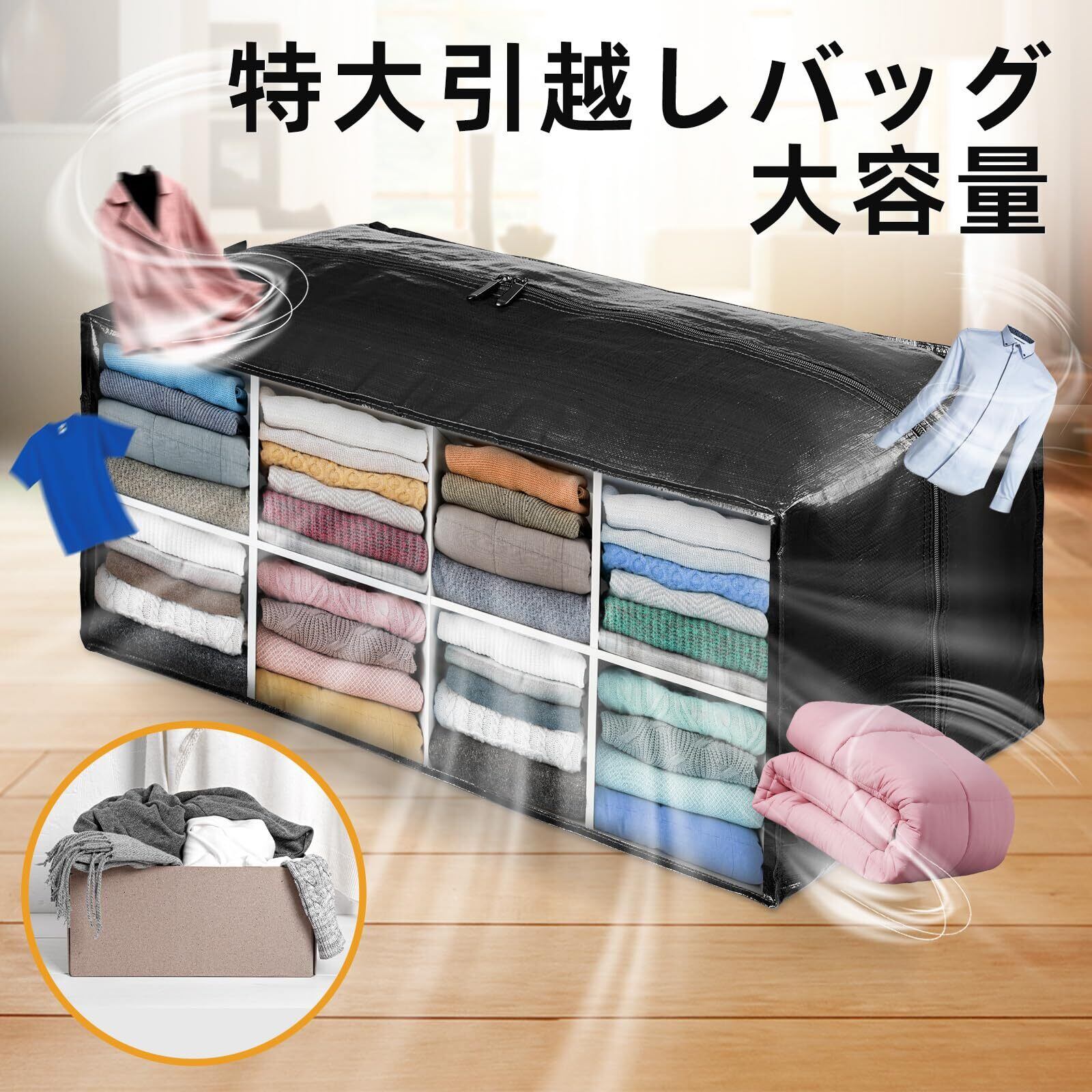 88L大容量、収納力抜群:抜群な特大引越しバッグの寸法:74 cm * 36 cm * 33 cm、4パック。 両端のジッパーと中央に大きな開口部があるため、衣類、おもちゃ、靴、タオル、必需品、枕、寝具、シーツ、毛布、洗濯物、クリスマス飾りなどを簡単に収納できます