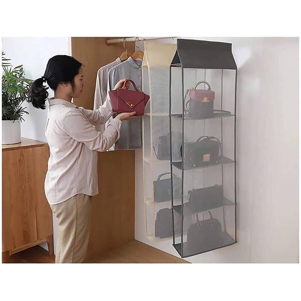 Hongmeru 吊り下げ収納 折りたたみ バッグ収納ラック バッグ ハンガー 省スペース 取り付け簡単 防湿 カバン収納 クローゼット 収納 バッグハンガー 4段式 3段式 2段式(4段, ベージュ)