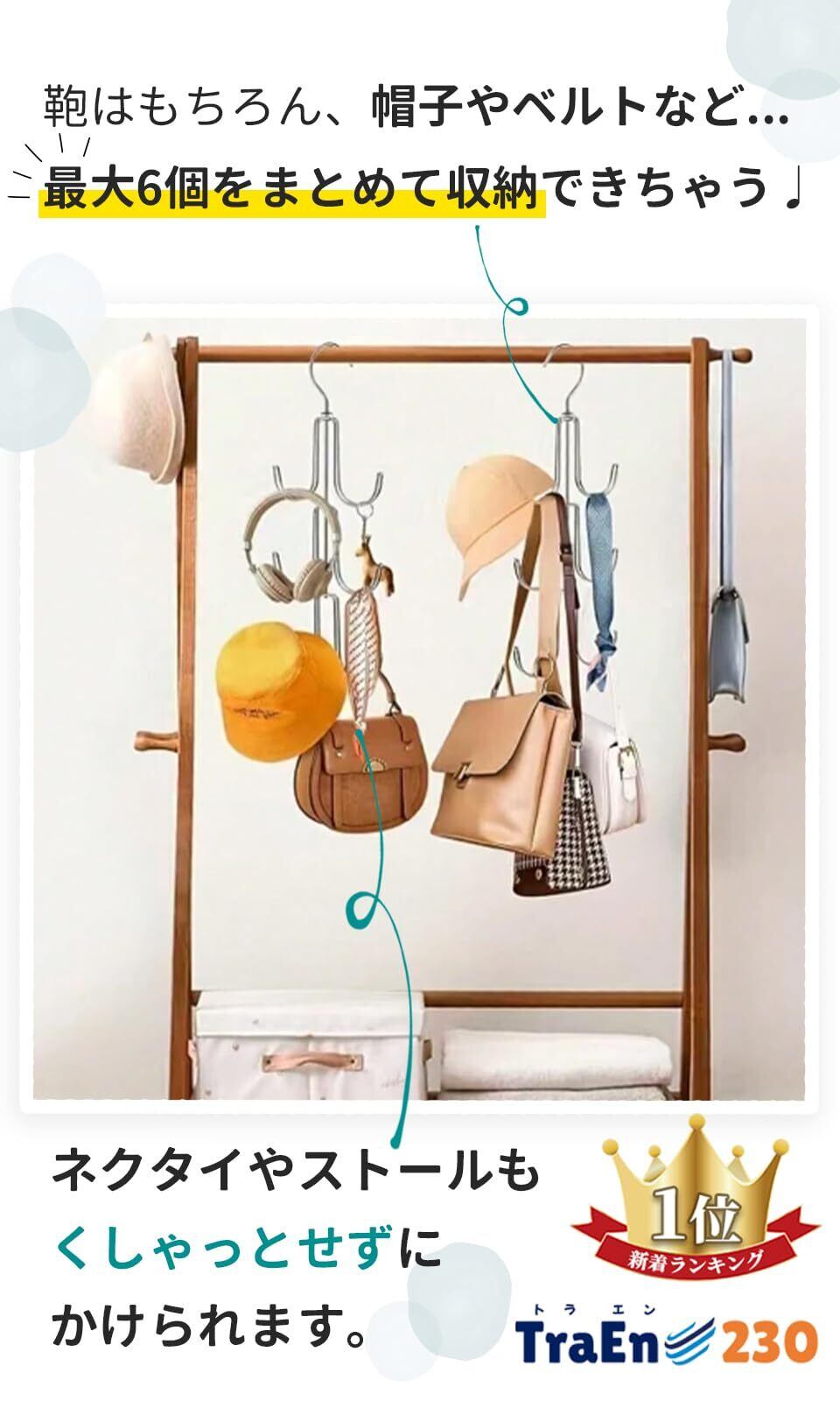 【商品の強み】︎ 縦の空間を有効活用 ︎帽子やネクタイなど最大6個収納出来る ︎ “かけるだけ”で出し入れ簡単