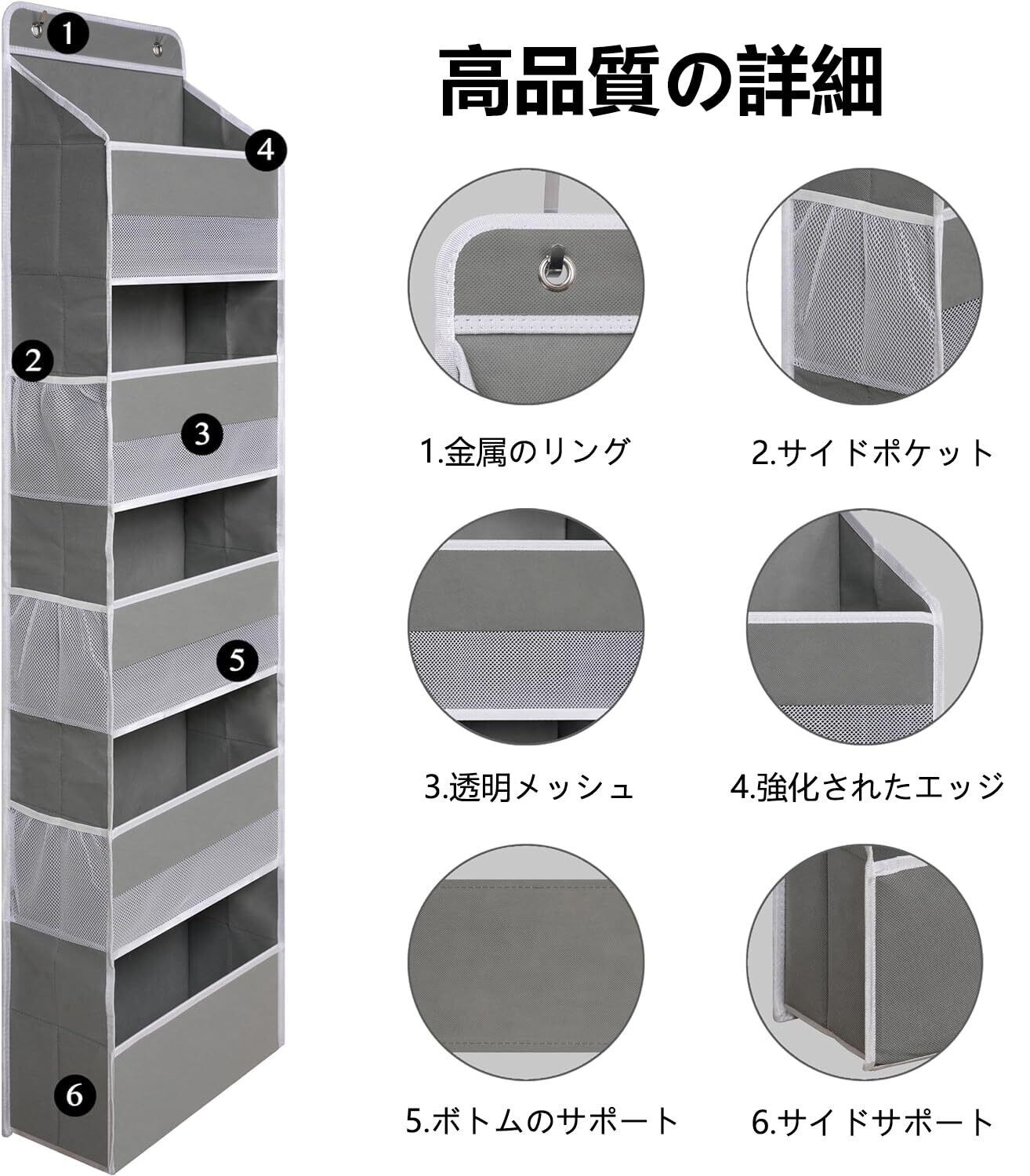 【吊り下げ収納 省スペース】-- ドア、壁、クローゼットに掛けて使える吊り下げ収納ポケットです。ドア掛け収納式ポケットは簡単に吊り下げられます。片づけの苦手な方でも、入れるだけで、しかも見やすいので、簡単に片づけ上手になれます。ドア掛け収納は玄関、寝室、子供部屋、脱衣場、洗面所、トイレなどだけでなく、幼稚園、保育園、オフィス、教室などにもご利用いただけます。