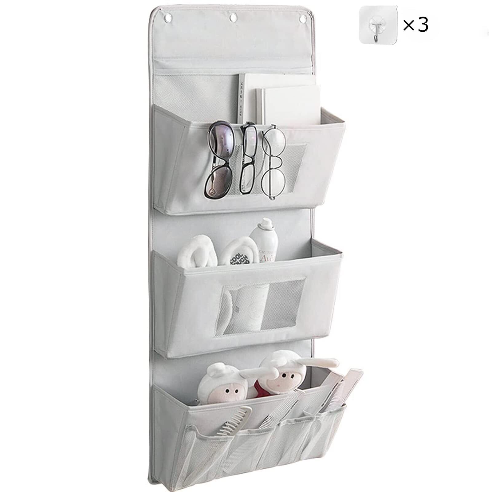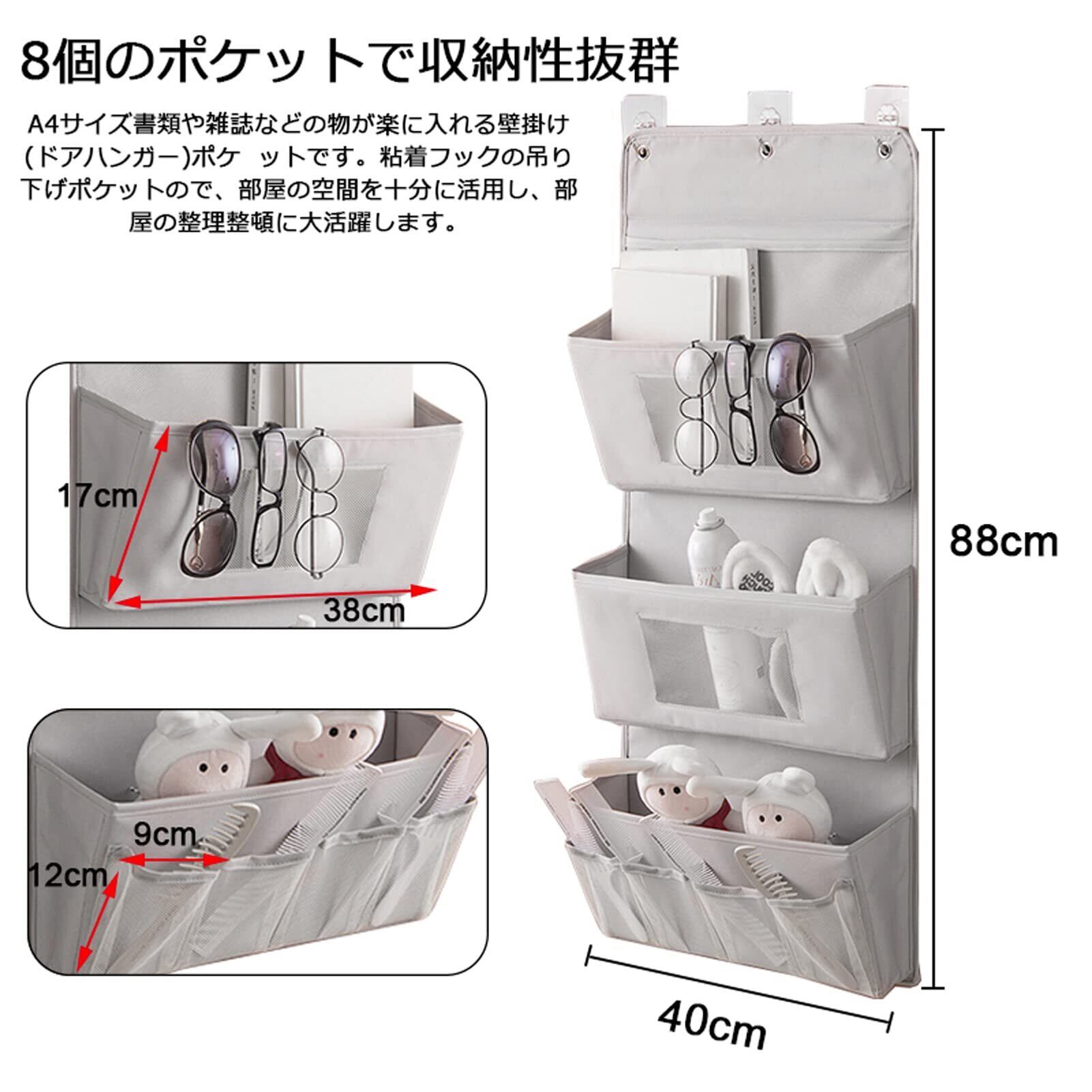 ArcEnCiel ウォールポケット 壁掛け収納式 ドアハンガーポケット 吊り下げ収納ポケット ドア掛け 3段 8ポケット 取付簡単 工事不要 a4 小物入れ 収納ポケット 雑誌 手紙 レター リモコン 寝室 玄関 事務室 洗面所 粘着フック付き グレー