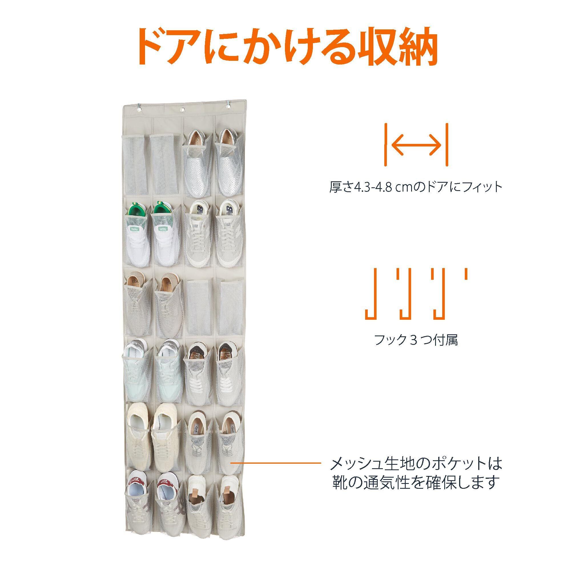 ベーシック ウォールポケット 靴収納 ドア掛け型 Mサイズ 24ポケット, ライトグレー