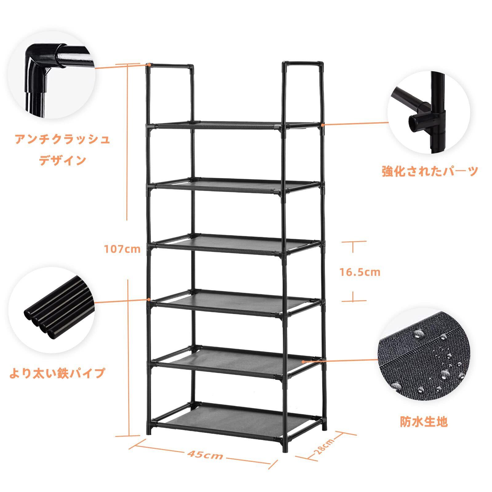 【2022最新】YOUDENOVA シューズラック スリム 靴棚 靴収納 12-18足 靴置き 靴箱 下駄箱 おしゃれ 縦長 省スペース 組み立て式 分割可能 取っ手付き 狭い 玄関 廊下 クローゼット 靴入れ (ブラック, 6段,幅45×奥行28×高さ107cm) | KURASHIBIYORI