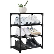 ETAOLINE シューズラック 大量 組み立て式 靴下駄箱 省スペース シューズボックス スリム 玄関収納 靴入れ 棚 (4段, ブラック-1)