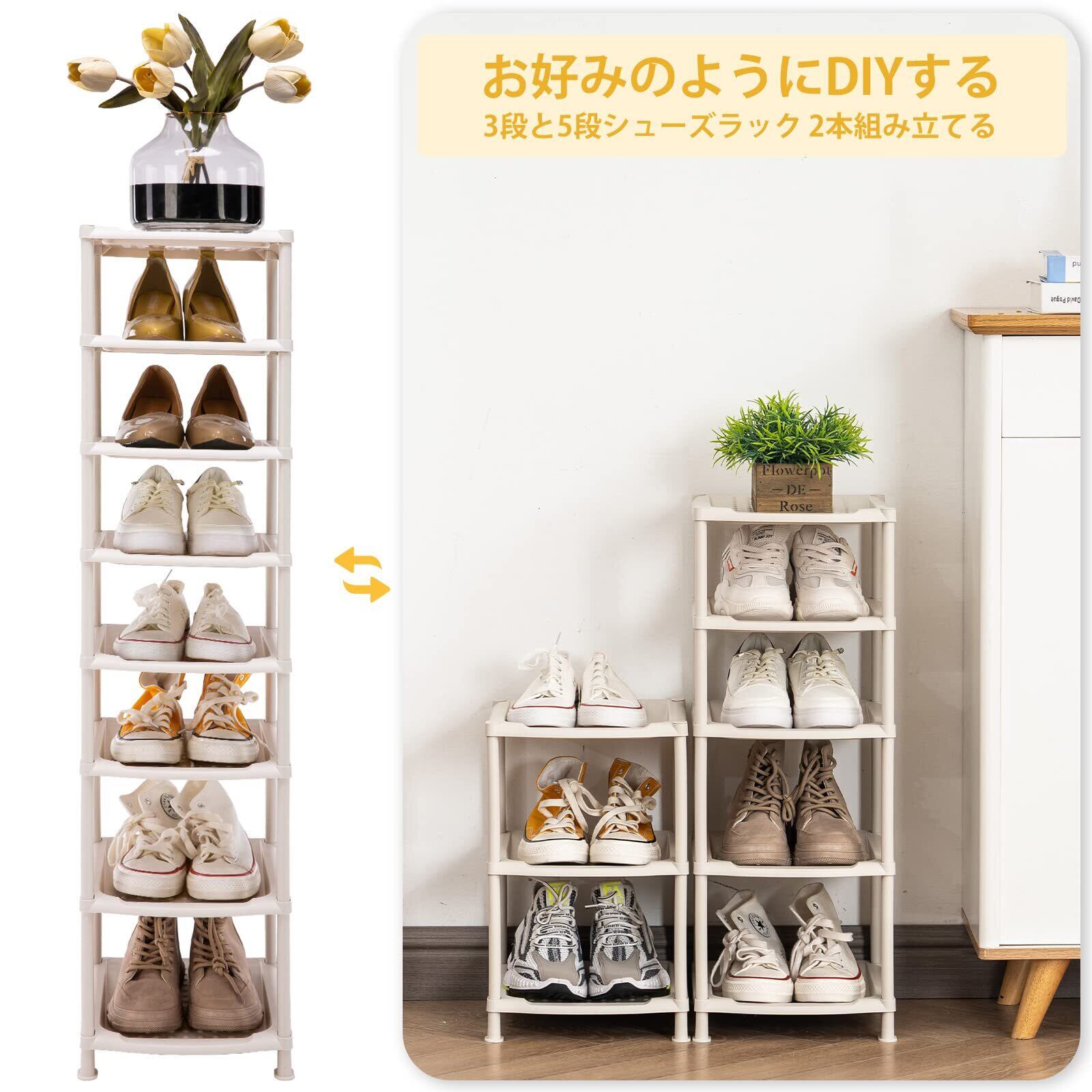 【特価商品】YOUDENOVA シューズラック スリム 靴収納 靴棚 省スペース 大容量 組み立て式 靴置き タワー コンパクト ポリプロピレン製 斜め置き 滑り止め トレー 狭い 玄関 廊下 クローゼット アパート用 靴箱 下駄箱 靴入れ(ベージュ・8段・26x33x112cm) | KURASHIBIYORI