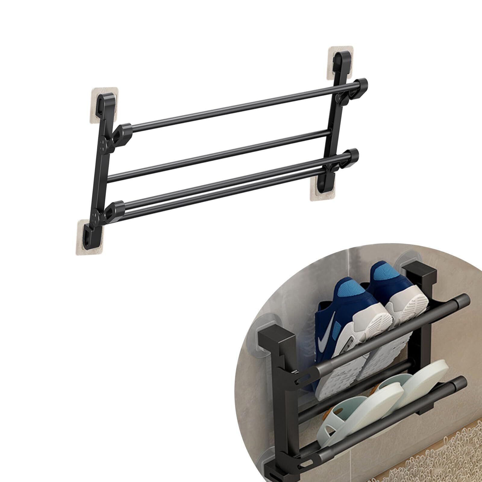 GKSCXEXE スリッパラック 壁掛け 靴ラック 靴入れ 30cm 2段 壁かけ 穴不要 両面テープ8枚付き 引っ掛け 粘着式 省スペース シューズラック 靴収納 窄版靴棚 金属製 大容量 安定 軽量 防水性 壁掛けフック ドアの後ろ 玄関 バスルームなどに適用 スリッパ 運動靴 ハイヒール 革靴(30cm)