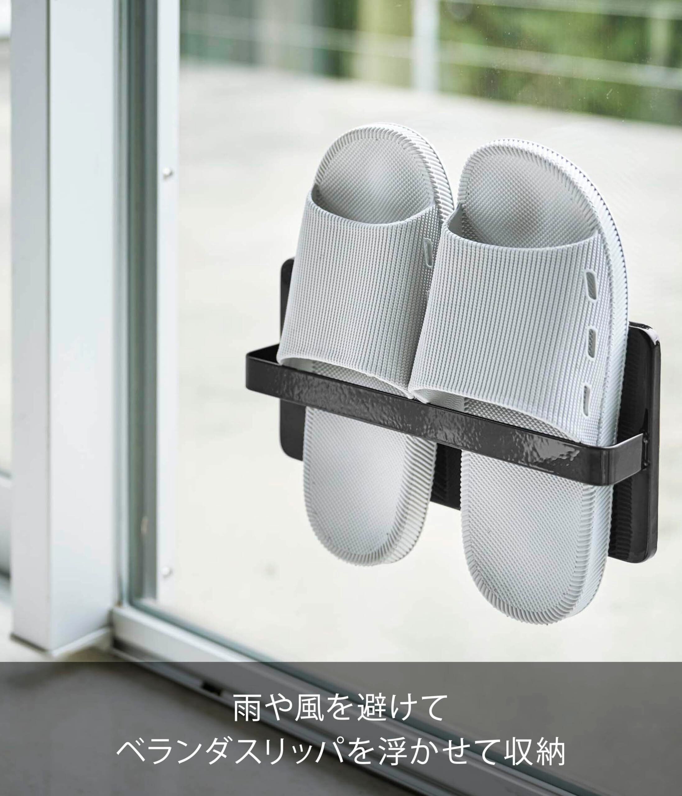 【2022最新】山崎実業(Yamazaki) ツーウェイベランダスリッパラック ブラック 約W25XD5XH12.5cm タワー 吸盤取り付け 木ネジ付きで壁面収納も可 4964 | KURASHIBIYORI
