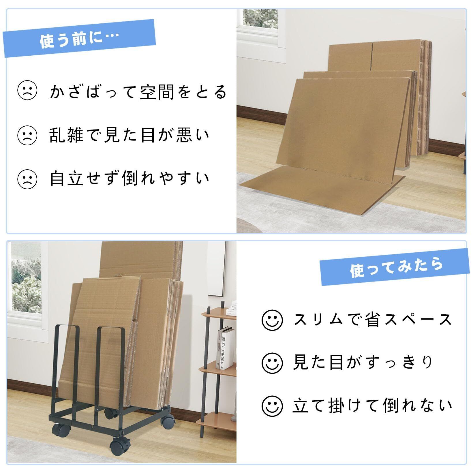 収納ラックダンボールストッカー キャスター付き ダンボール収納 新聞収納 雑誌収納 段ボール置き 最大収納枚数15枚 組み立て簡単 整理整頓 段ボール ストッカー コンパクト ブラック